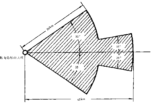 圖1 航向信標(biāo)臺(tái)覆蓋區(qū) 4.1.4 航向信標(biāo)臺(tái)覆蓋區(qū)內(nèi),最低信號(hào)場強(qiáng)為40μV/m(32dB)。
