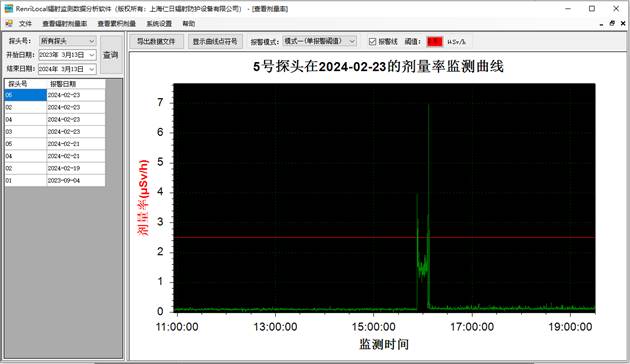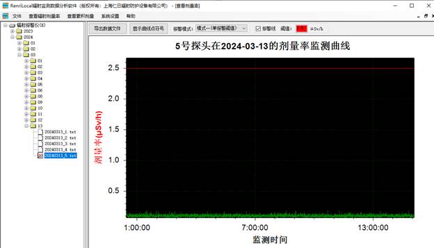 6、數(shù)據(jù)分析:免費(fèi)提供功能強(qiáng)大的RenLocal輻射監(jiān)測數(shù)據(jù)分析軟件,可通過曲線和棒狀圖的形式分析歷史劑量率和累積劑量數(shù)據(jù)以及實(shí)時查詢報警數(shù)據(jù)與統(tǒng)計(jì)分析等