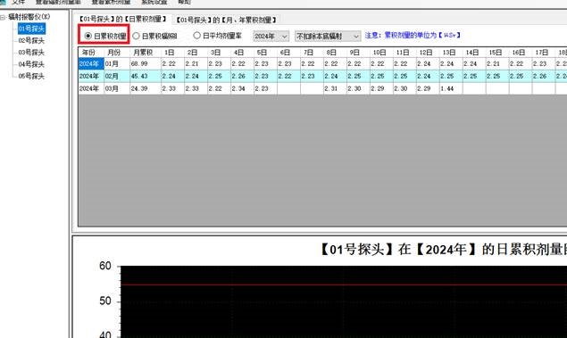 4、測量數(shù)據(jù):劑量率、日累積劑量、月累積劑量、年累積劑量、總累積劑量、日平均劑量率、月平均劑量率、年平均劑量率、總平均劑量率